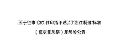 各有關(guān)單位及個(gè)人: 參照《浙江省標(biāo)準(zhǔn)化條例》的有關(guān)要求,現(xiàn)就浙江新空氣工藝品有限公司起草的《3D打印指甲貼片》“浙...